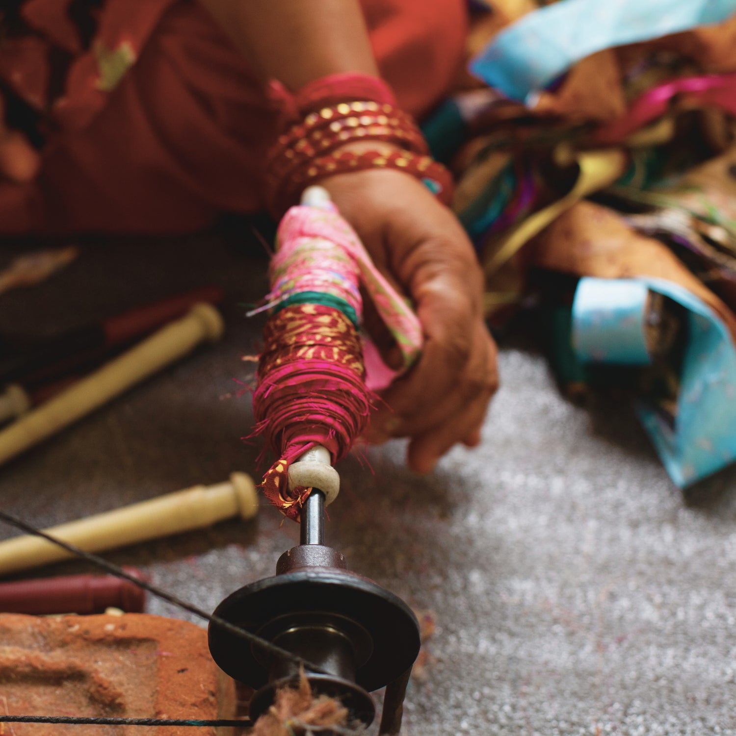 Every piece begins with raw material and is transformed through a careful, human-centered process.Natural fibers are cleaned, spun, and woven often by hand or in small-scale workshops before becoming the base for design.Unlike industrial manufacturing, where speed and uniformity dominate, our process honors time, variation, and the unique character of handmade work.Each step reflects a deeper relationship between the artisan, the material, and the final piece.
