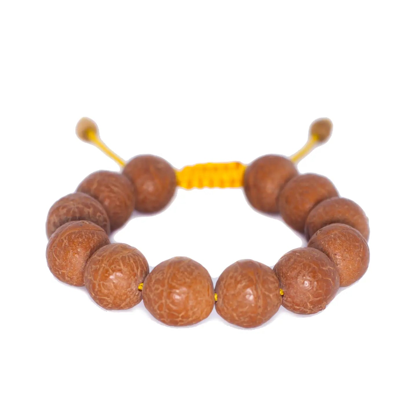 This bracelet is made from Bhodi seeds, it is used as prayer beads. It is woven using a wax cotton cord with adjustable sizes that will fit anyone.
