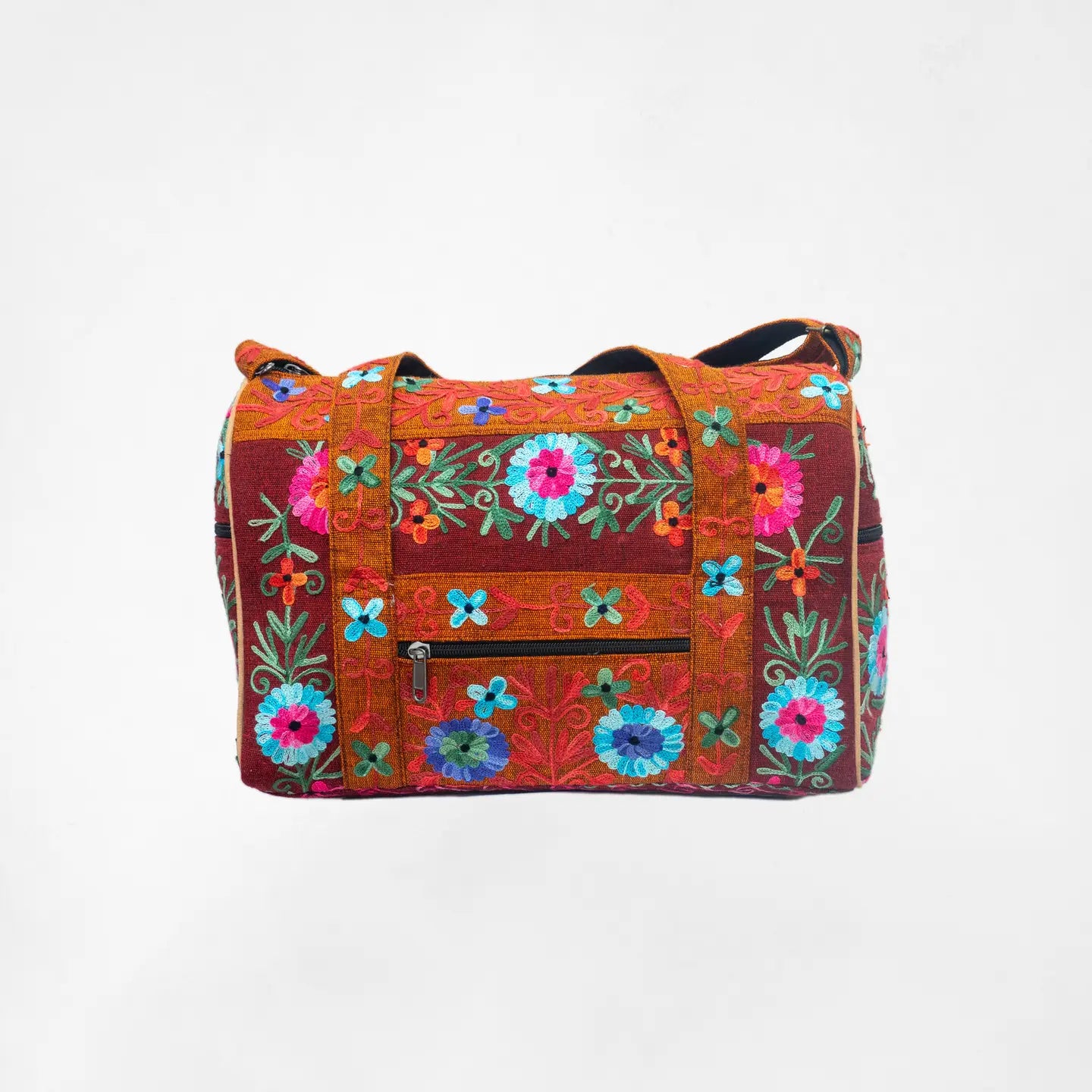 Mini travel hand or shoulder embroidery bag is a compact yet stylish accessory perfect for on the go adventure. It's a hand made bag using 100% pure hand woven cotton fabric. It is crafted with intricate embroidery adding the unique touch to your ensemble.