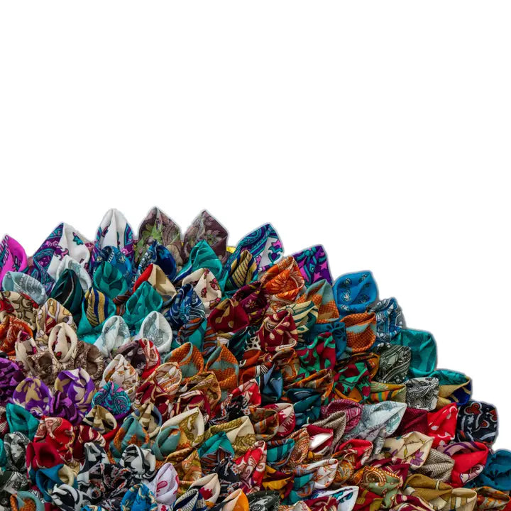 Each piece is unique, handmade by our women using recycled fabrics. Therefore you will receive a selection of random colors and patterns. All our products are crafted with a love for craft and tradition, which makes each thread truly unique.
