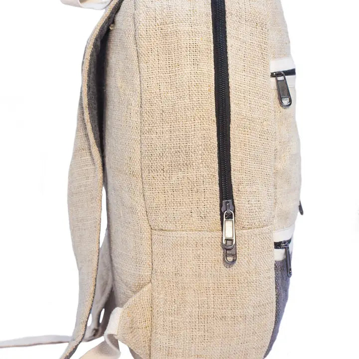 This colorful organic hemp backpack is versatile, durable, and uniquely fashionable. Perfect for everyday use for school, office, or outdoors. The main compartment includes a small zip pocket. Two additional front zip pockets for easy storage of daily needs. The fully lined and padded straps are adjustable and hold up to 5kg (11lbs). High quality zipper and padded back for extra comfort. This backpack is made with hemp, hand-loomed, completely natural and sustainable, and after a few years of use it can be composted in less than a year instead of being thrown in a landfill alongside synthetic backpacks that take 1200 years to decompose! Product Care: Due to the fact that the products are handmade from ecological materials we recommend that you wash the products with cold water and allow them to dry flat.