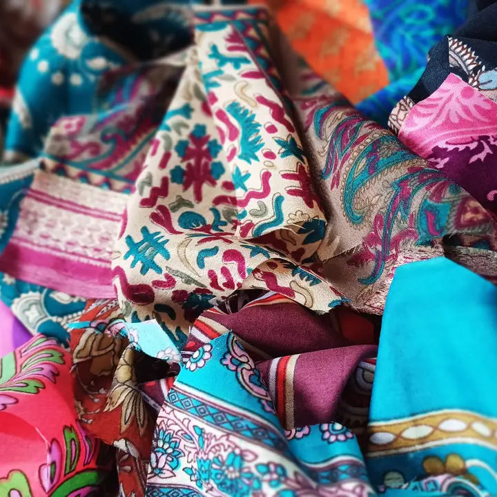 Each piece is unique, handmade by our women using recycled fabrics. Therefore you will receive a selection of random colors and patterns. All our products are crafted with a love for craft and tradition, which makes each thread truly unique.