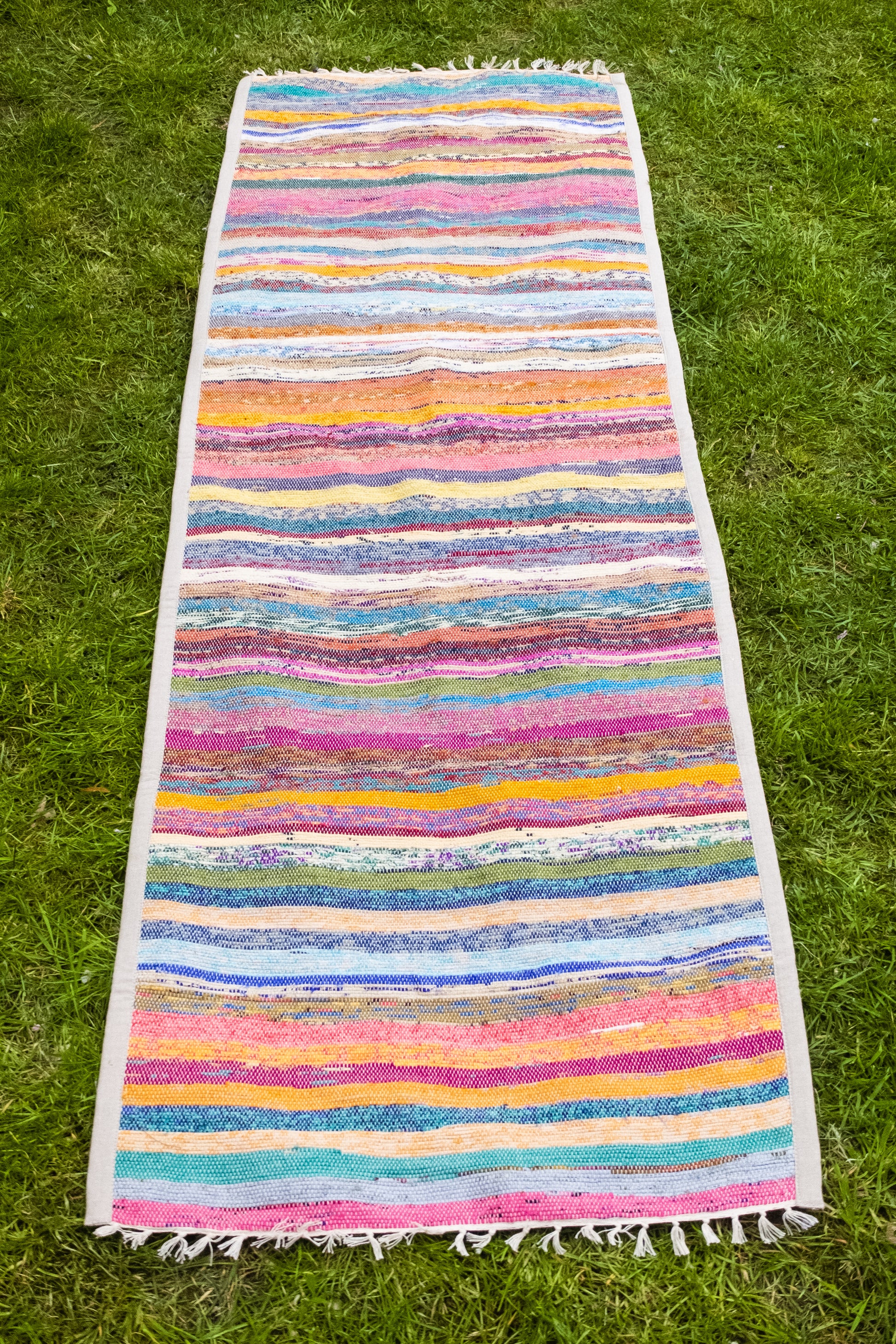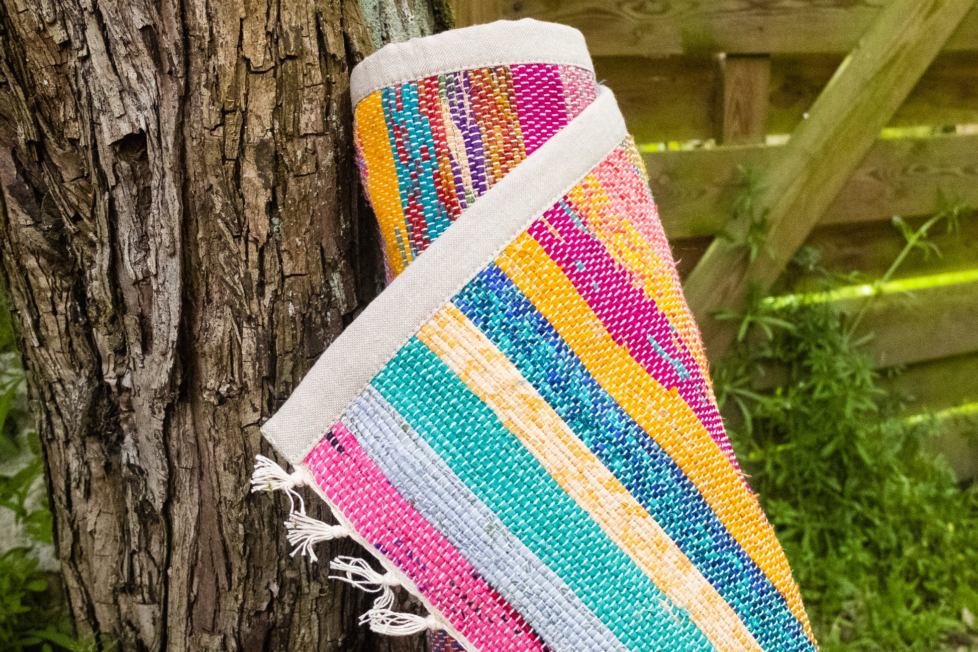 This yoga mat is beautifully made using recycled sari fabrics. It is extra padded with natural cotton fabric to bring you comfort and anti-slip protection during your practice. It will add a beautiful color touch and give your feet a nice massage, and create a more luxurious yoga experience for you.