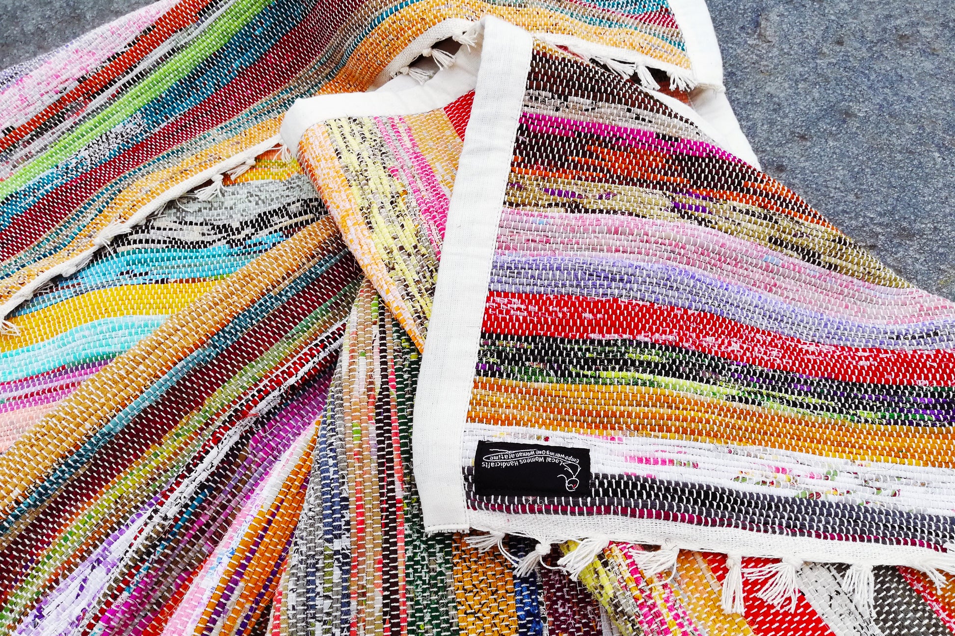 Each piece is unique and handmade by our women, so your product will resemble the image shown but have its own unique color palette.